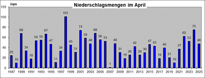 Höchster Niederschlag: 4,2 mm am 30. April