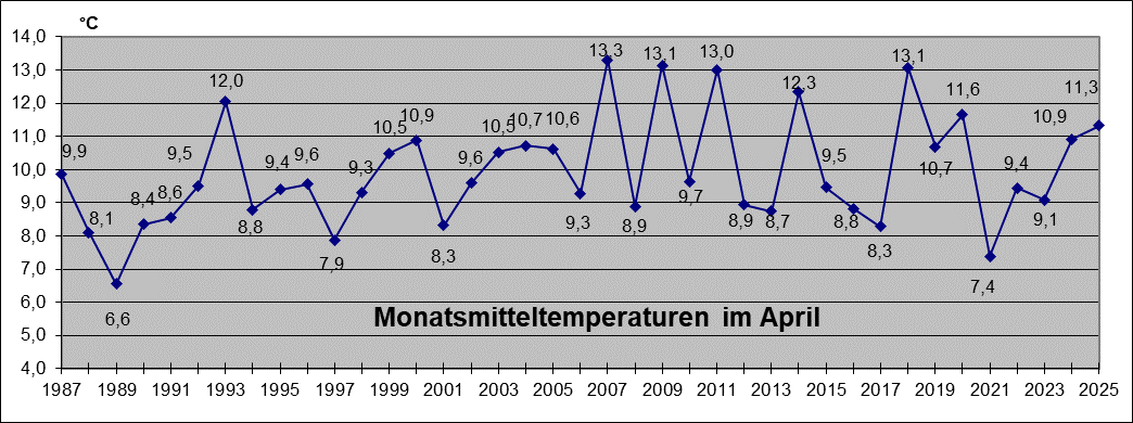 Höchste Temperatur: 24,8 °C am 8. April
