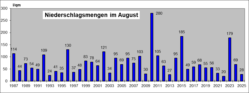 Höchster Niederschlag: 20,5 l/qm am 29. August