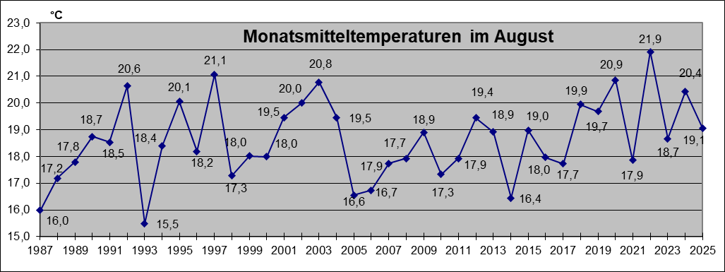 Längste Sonnenscheindauer: 12:36 Std. am 24. August
