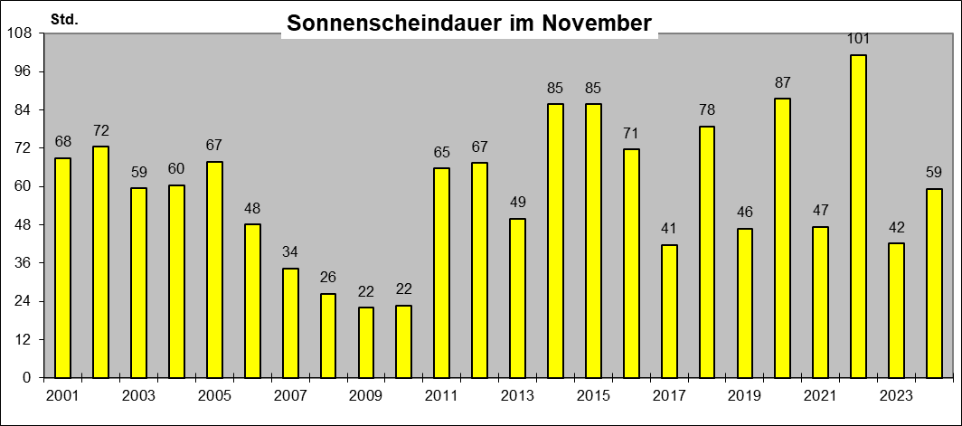 Längste Sonnenscheindauer: 7:24 Std am 30. November