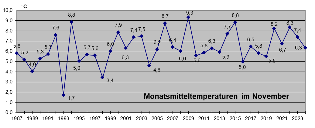 Höchste Temperatur: 17,1°C am 25. November