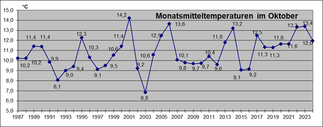 Höchste Temperatur: 22,8°C am 13. Oktober